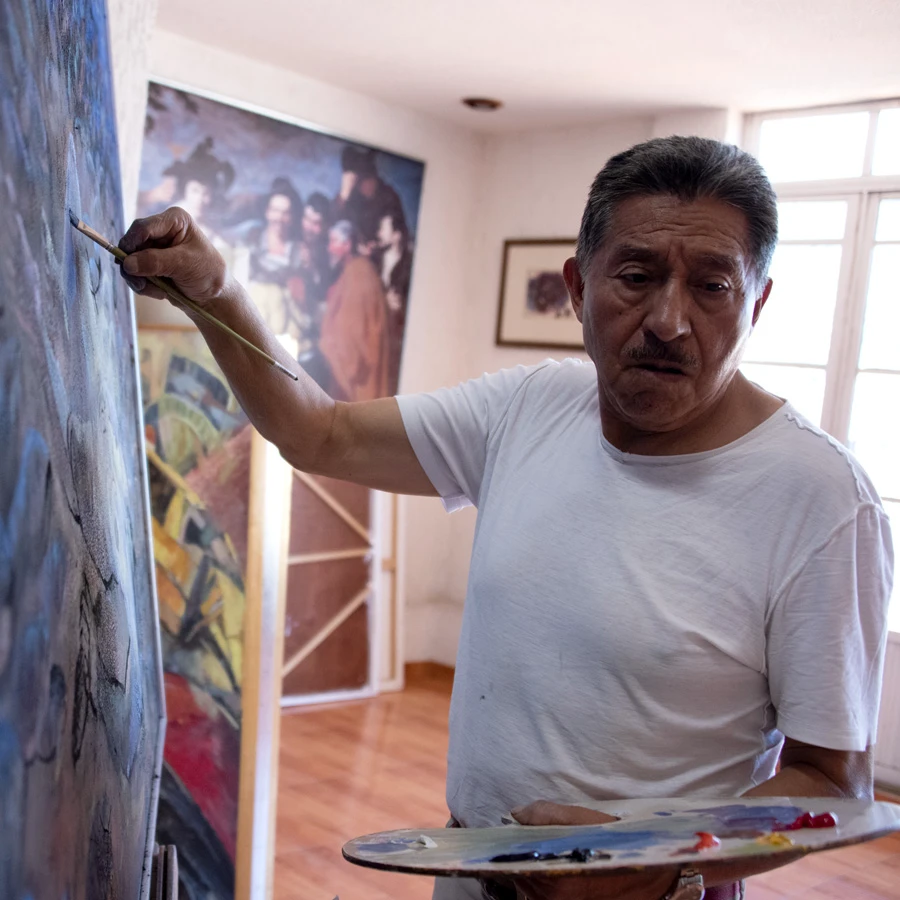 Soy pintor y hasta ahora he desarrollado mis artes visuales en tres temas principales: el nostálgico paisaje rural, el enfermizo paisaje urbano y el misterioso paisaje marino. Mi primera exposición colectiva se llevó a cabo en 1966 en la Academia de San Carlos; he recorrido una larga lista de galerías en México, Estados Unidos, Chile, Alemania y otros países. También he expuesto en el Palacio de Minería, Exposición Internacional de Arte de Chicago; Clayton Rein Galleries, Minnesota; y Wimmer Gallery, Múnich, Alemania.